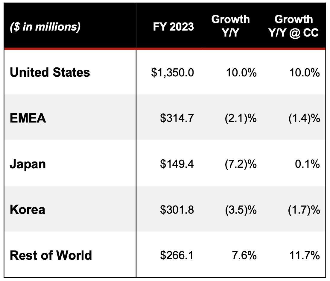 Korea is a massive market for equipment and apparel. In 2023, Acushnet alone recognized over $300 million in revenue from Korea, which made up 13% of its total revenue.