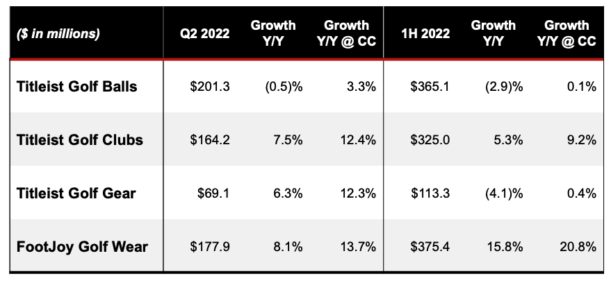 Titleist golf balls led the way from a revenue standpoint at $201.3 million — a .5% decline. The most significant growth segment was FootJoy — growing 8.1%.