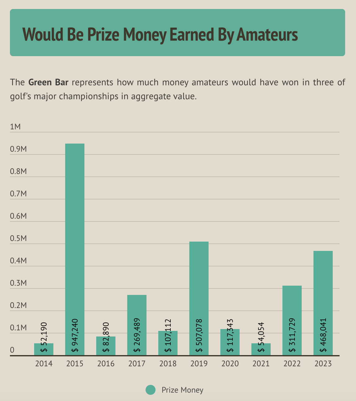 If amateur golfers were allowed to accept prize money in the 2023 major championships, they would have collected $468,000 — which would have been the third-highest amount in the last ten years.