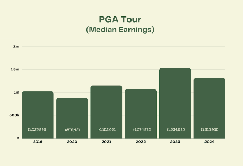 Here’s a look at PGA Tour median earnings since 2019 — it includes the current season, which will continue to rise.