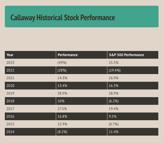 Historical context is important — Callaway has performed fairly well in the last ten years.