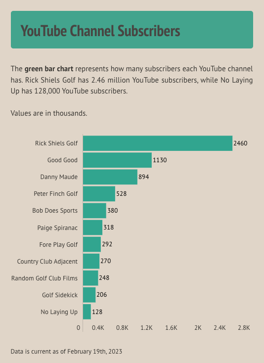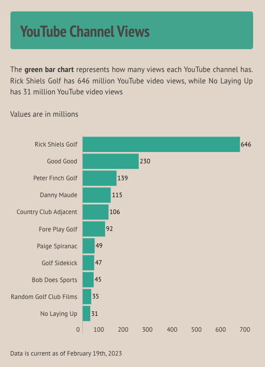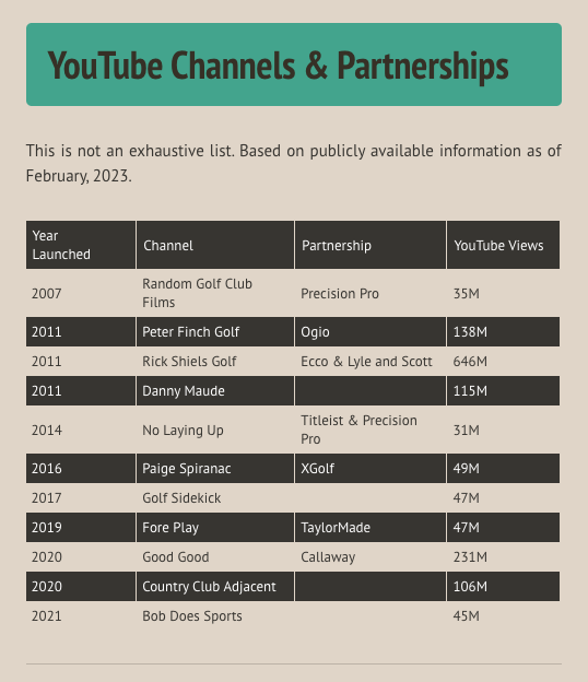 Golf-related YouTube channels have grown significantly in the last five years. Since 2017 — five channels have entered the market. They all have at least 45 million views or more.