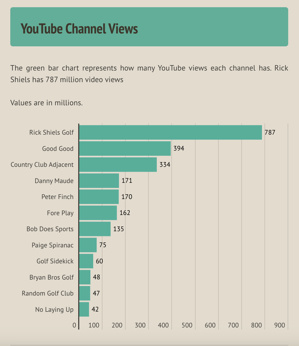 Each channel has at least one video with over 1 million views. Good Good has a video with 8.7 million views. For perspective, the U.S. Open has not seen 8.7 million views on a Sunday since 2012.