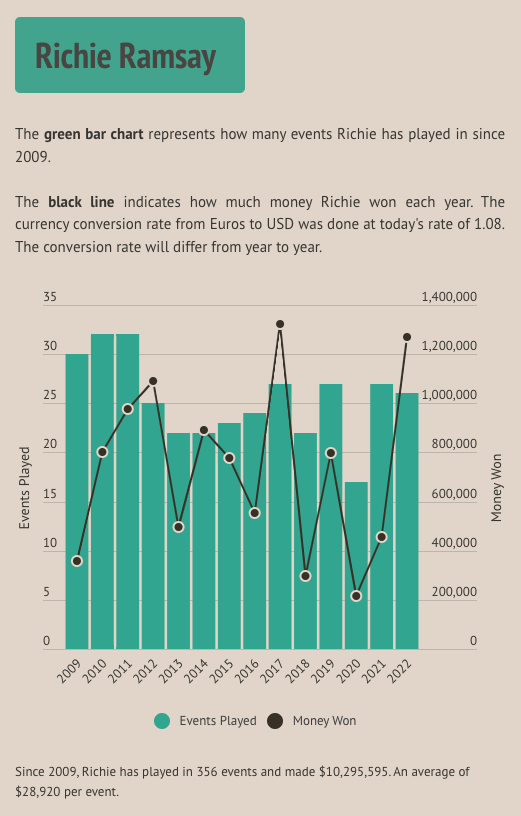 Richie Ramsay played in 26 tournaments in 2022. He played in 13 countries and on three continents.