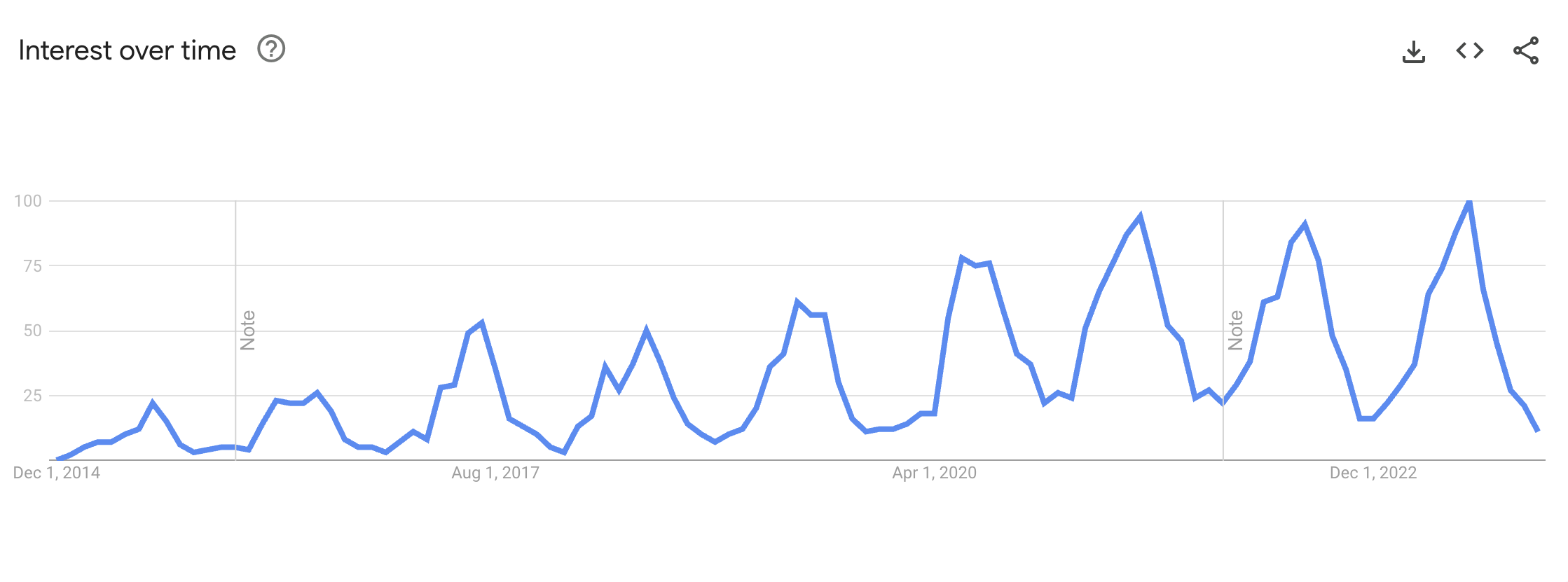 Analyzing Google search results is interesting — it tells us exactly what consumers want and how their interests have trended. There is no hiding from the trends.