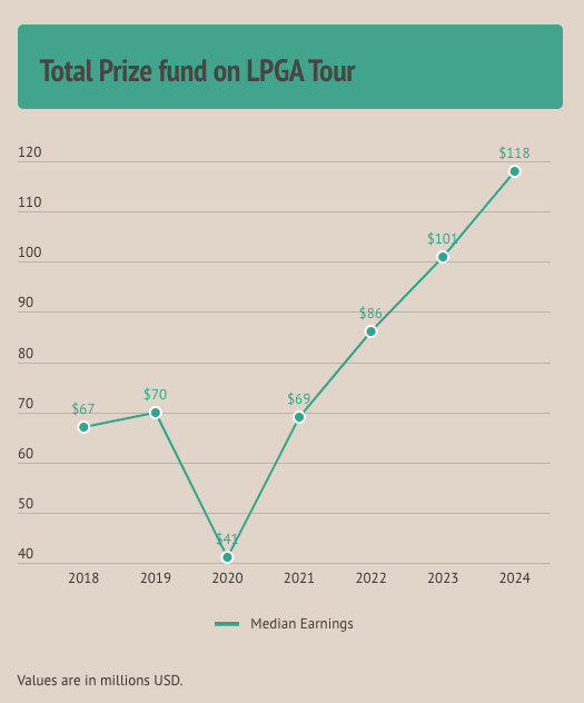 The LPGA Tour is only going to get better in 2024. Golfers will compete for a total prize fund of more than $118 million — around an 18% increase from 2023 and a 76% increase from 2018.