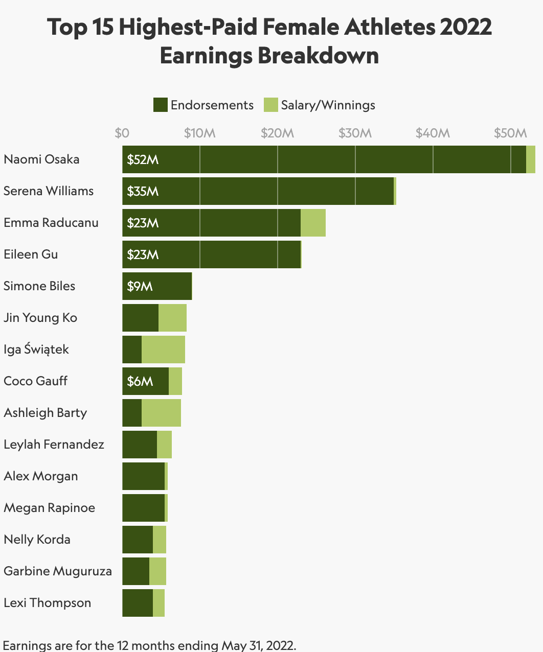 Sportico compiled a list of the top 15 female athlete earners in 2022, including endorsements. Three golfers made the list compared to nine tennis players.