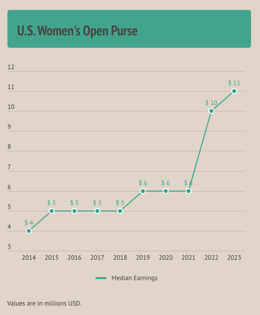 And the majors have seen a significant increase in the purse size since 2014. The U.S. Women’s Open has increased by 175%.