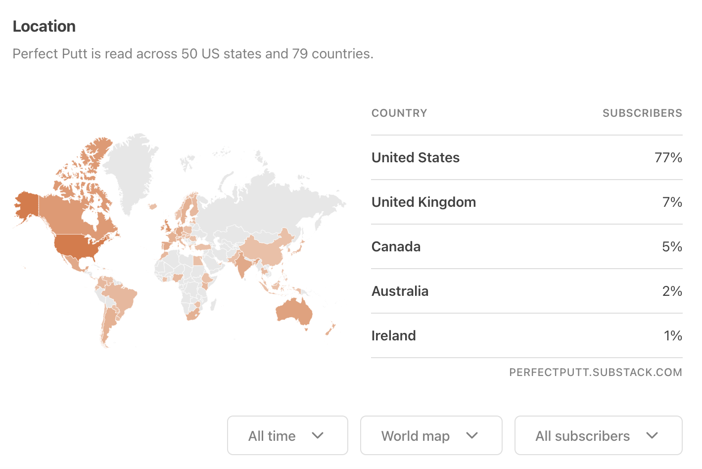It truly blows my mind that Perfect Putt is read in 79 countries.