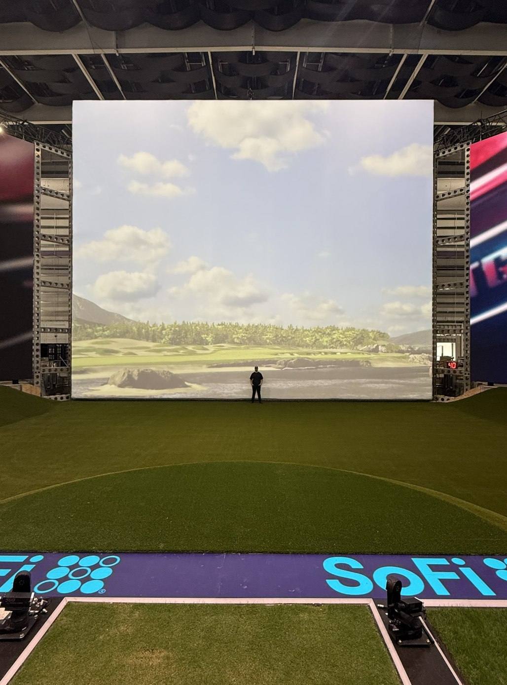As an aside, this isn’t golf in your local simulator. Alexis Ohanian tweeted this photo of him standing in front of the screen last week. It is enormous.