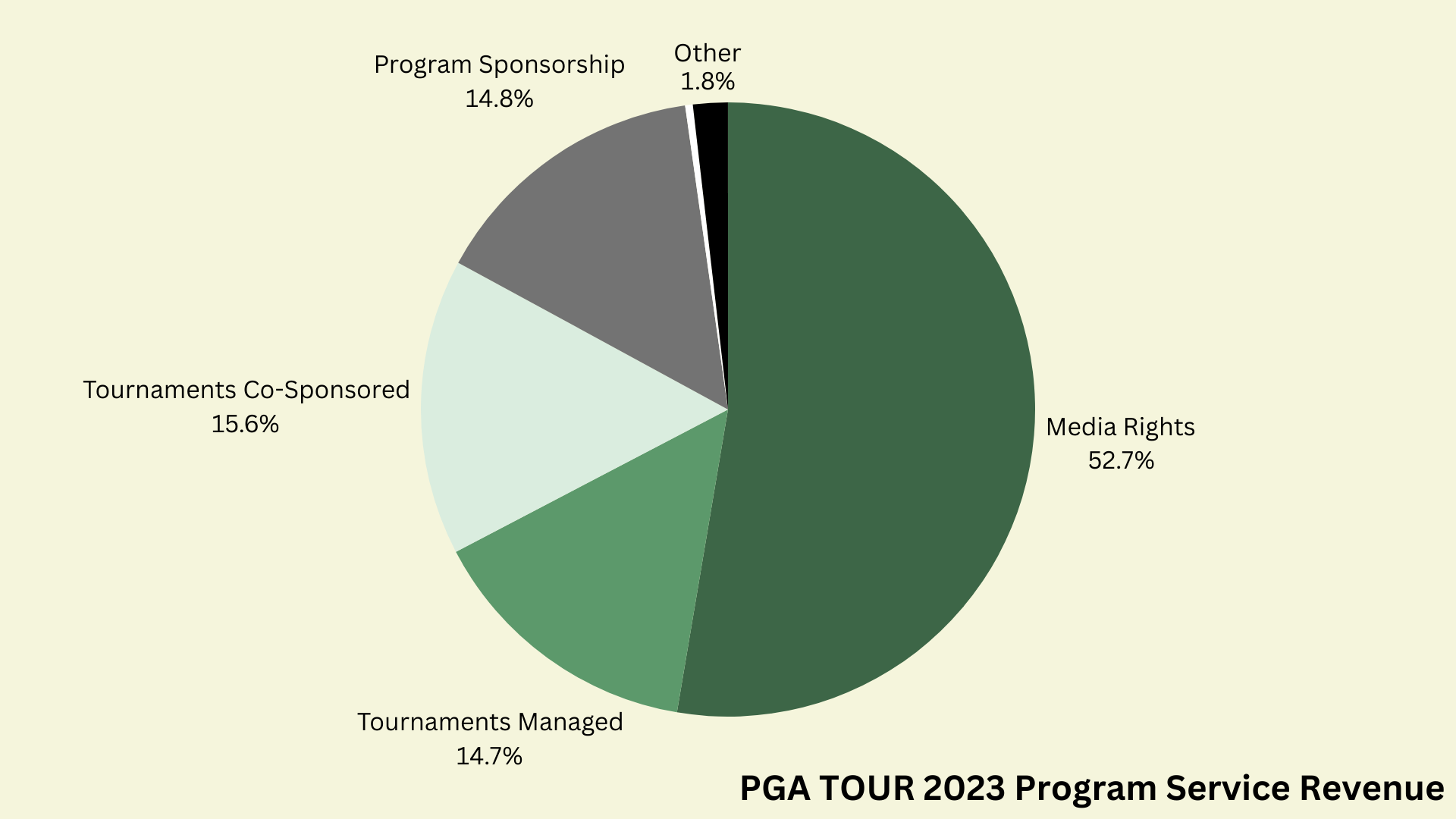 In 2023, the PGA Tour recognized $730 million in media rights revenue, about 40 percent of its total revenue.