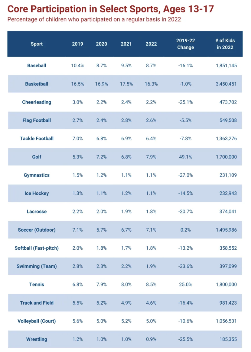 The Aspen Institute has also named golf the fastest-growing sport among kids ages 13-17, with a 45% increase in participation between 2019 and 2022.