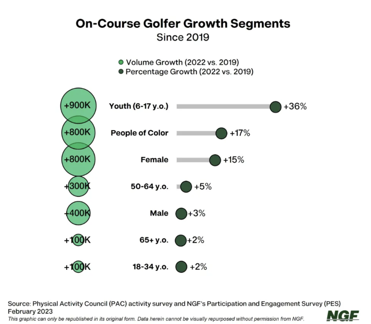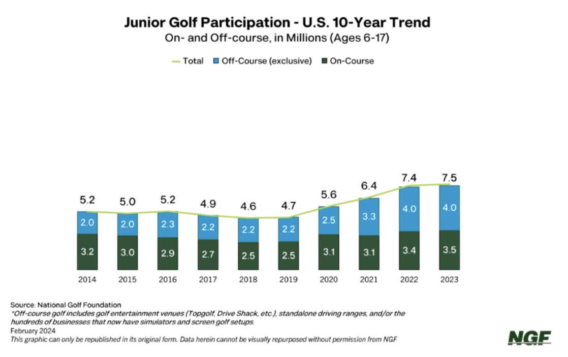 - On-course junior golfers rose by 1 million, representing a 40% increase since 2019.