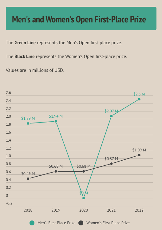And it’s even better for the AIG Women’s Open. In 2018 the winner won $490,000, and in 2022 Ashleigh Buhai won $1.09 million — an increase of 120% in five years.
