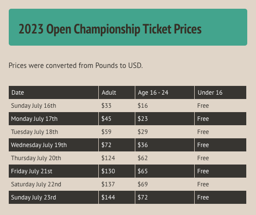 The Open Championship expects to see 260,000 fans at Royal Liverpool this year — coming off a record of 290,000 fans at St Andrews last year. The R&A sells tickets for eight days to The Open. And in my opinion — no one does tickets better than The Open.