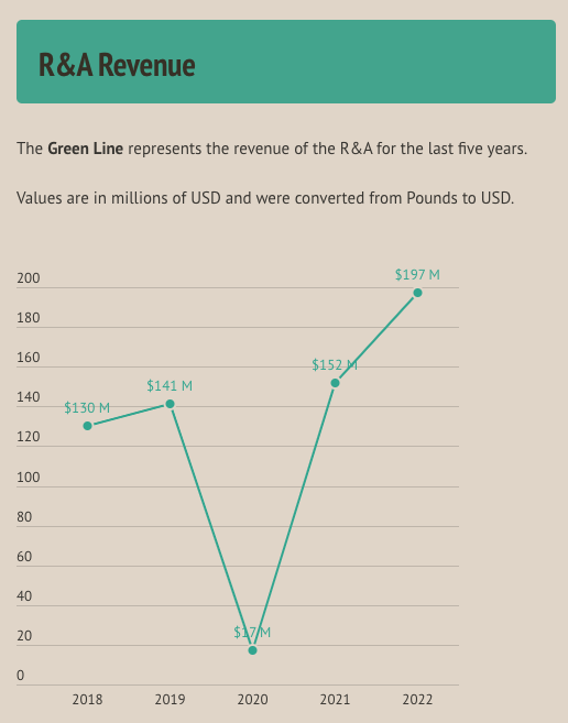 The R&A had an incredible $45 million increase in revenue from 2021 to 2022. And since 2018, the R&A has managed to increase revenue by 50%.
