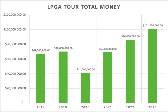 The LPGA Tour announced its 2023 schedule — golfers will play for more than $100 million in total prize money. An increase of over 50% since the 2018 LPGA Tour season.