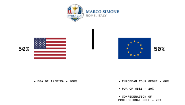 Ryder Cup ownership is split 50-50 between America and Europe. The ownership of the American 50% is the PGA of America. While the ownership of the European 50% is split between three organizations.