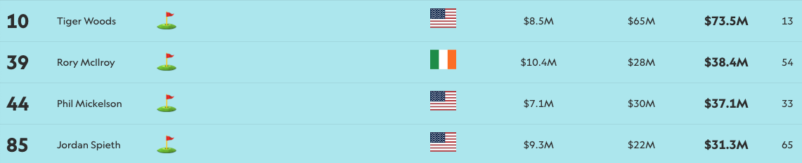 Professional golfers have an incredible upside in off-course earnings. Sportico released a report for the Top 100 highest-paid athletes in 2022 — four were golfers. Rory McIlroy made $28 million in off-course earnings, while Jordan Spieth made $22 million.