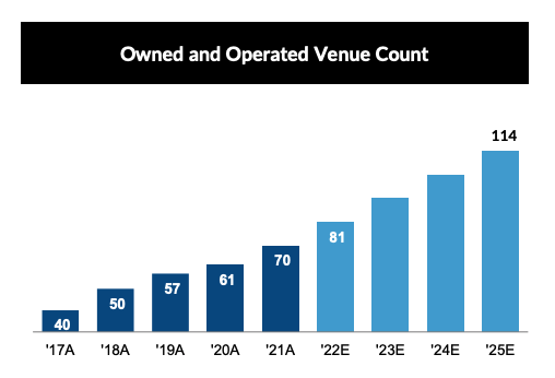 Topgolf has identified around 450 venue opportunities globally. Using the 2021 venue number of 70 — Topgolf is only 15% of where they think they can be venue-wise; that is incredible.